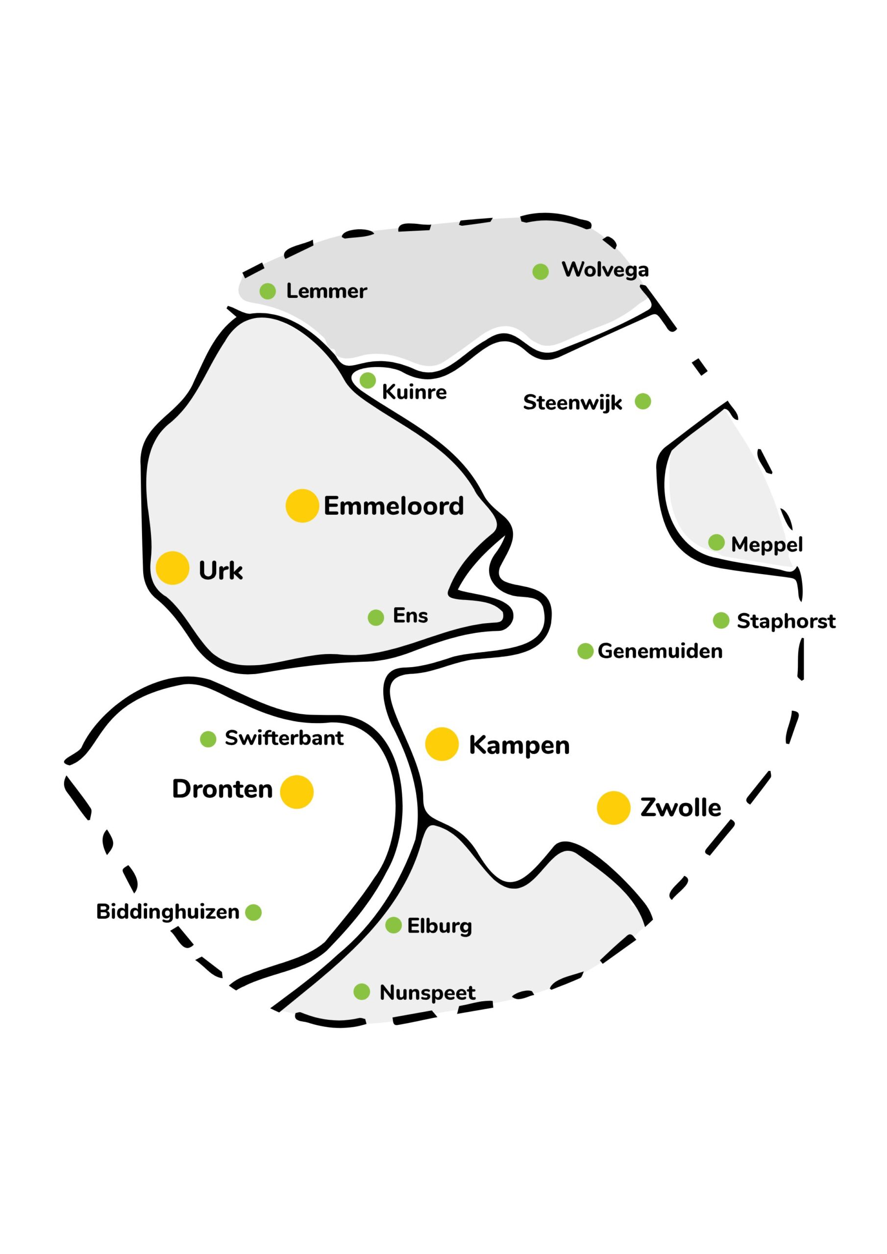 In drukke periodes kan het helaas voorkomen dat wij afwijken van het kaartje, en dat wij in jouw woonplaats geen zorg kunnen bieden. Op deze manier zorgen we ervoor dat alle gezinnen de zorg krijgen die zij nodig hebben.